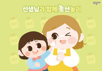 선생님과 눈맞춤하고 "사랑해~"라고 말하며 안아주세요. 선생님이 팔을 벌리면 나는 선생님에게 기어가 "사랑해~"라고 말하며 선생님 품에 안겨요.